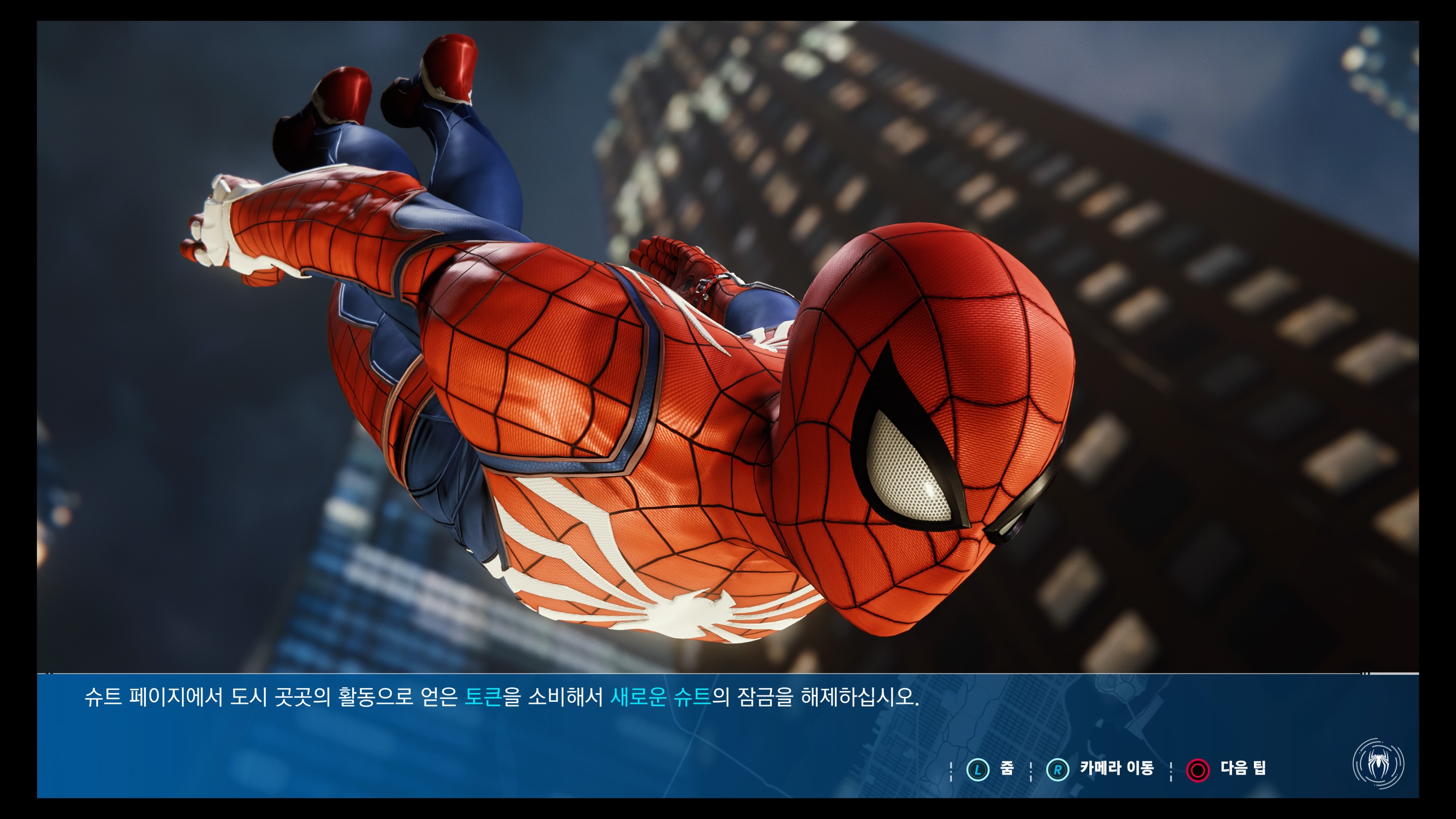 도시에서 웹이동으로 활강하는 맛도 일품이고요. 돌아다니는곳은 한정적이지만 파고들요소는 굉장히 잘 만들어놨습니다. 슈트도 DLC로 팔아먹을수있는데 이걸 야리코미 요소로 남겨둔게 좋았네요.