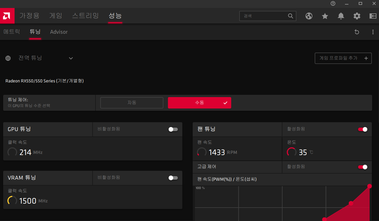 라데온 그래픽카드는 게임별로 또는 전체 성능을 미세하게 관리할수있었다. 드라이버로.